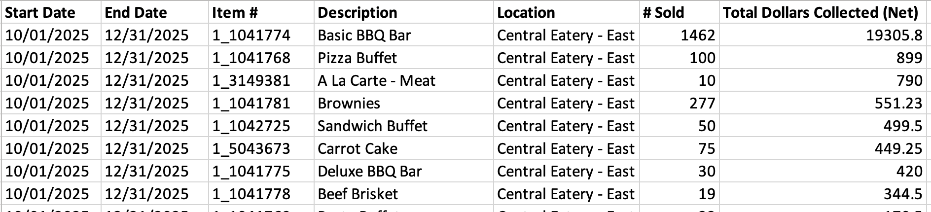 Combine this report with Event Type to see which menu items shine where (e.g. brisket kills it for weddings, but wraps rule the lunch game).